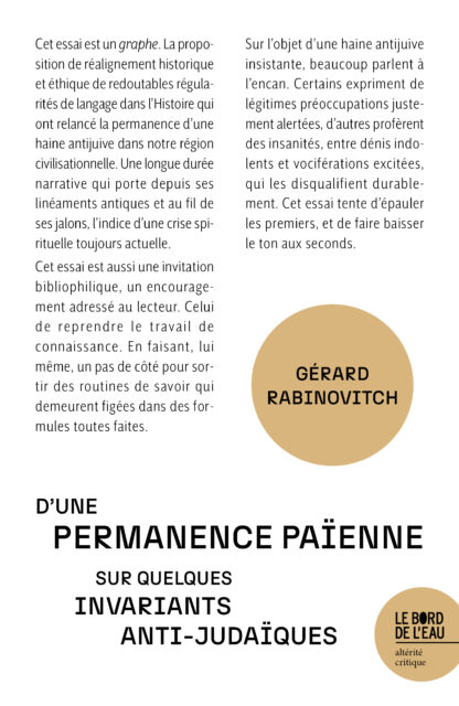 -Le livre de Gérard Rabinovitch « D’une permanence païenne ; sur quelques invariants anti-judaïques »